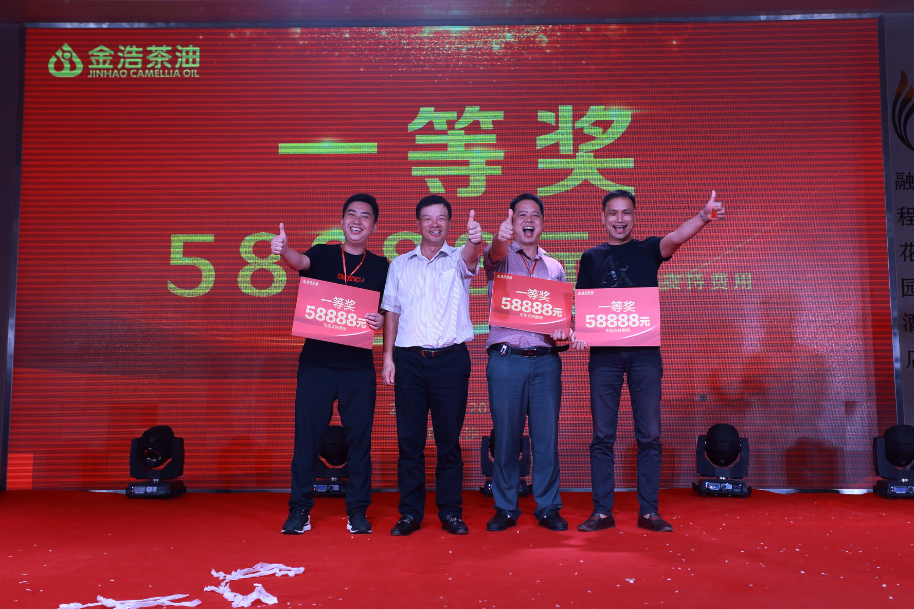 而演出特別設置的抽獎環節更是到達了晚宴的高潮,金浩茶油本著對經銷商們的感激之情,送上了豐厚的獎品,整個晚宴現場氛圍熱烈,其樂融融